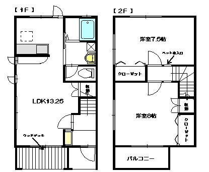 2LDK[1F:LDK13.25 2F:洋室8帖・洋室7.5帖]