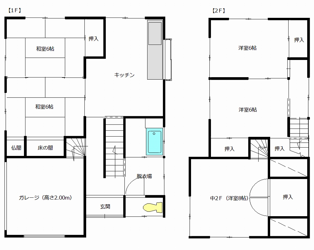 5DK [ 和室6帖×2 2F:洋室6帖×2、洋8帖(中2F) ]