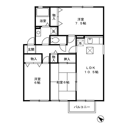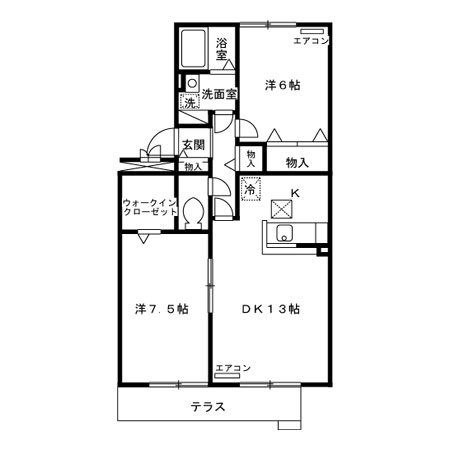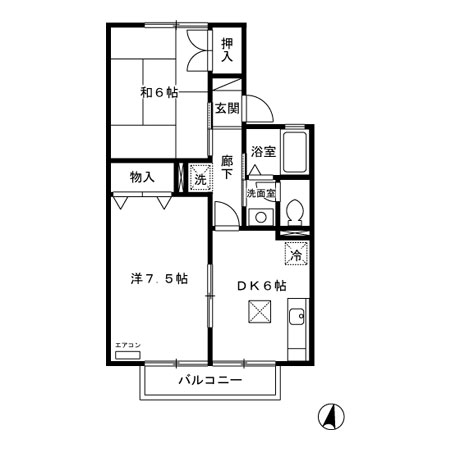 2DK[ 洋室7.5帖、和室6帖、DK6 ]