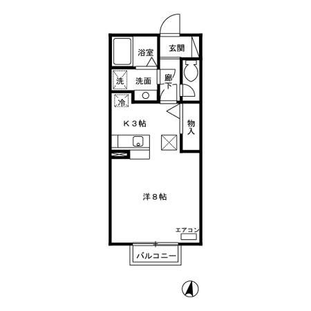 1K[洋室8帖、キッチン3]