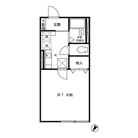 1K [洋室7.8帖、キッチン]