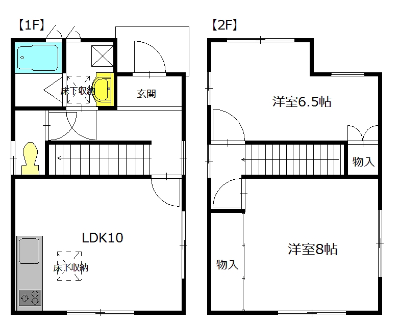 2LDK[1F:LDK10 2F:洋室8帖、洋室6.5帖]