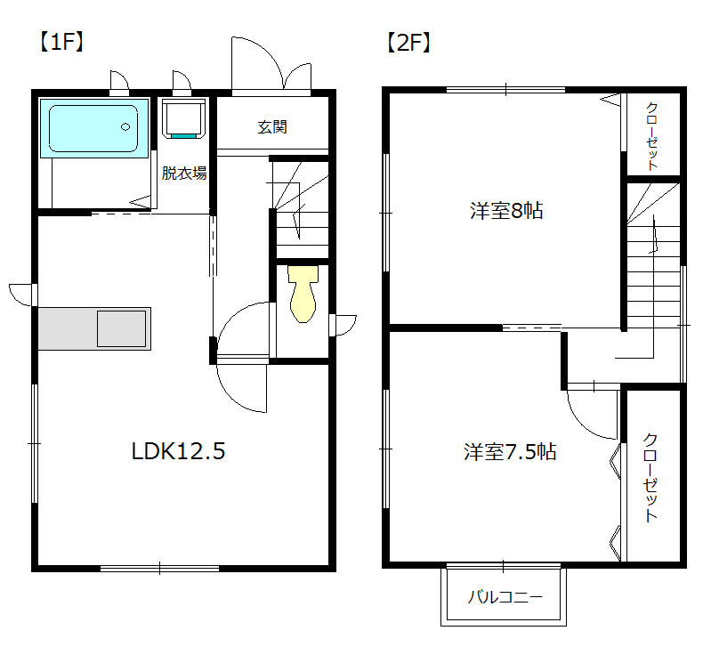 2LDK[1F:LDK12.5 2F:洋室8帖、洋室7.5帖]
