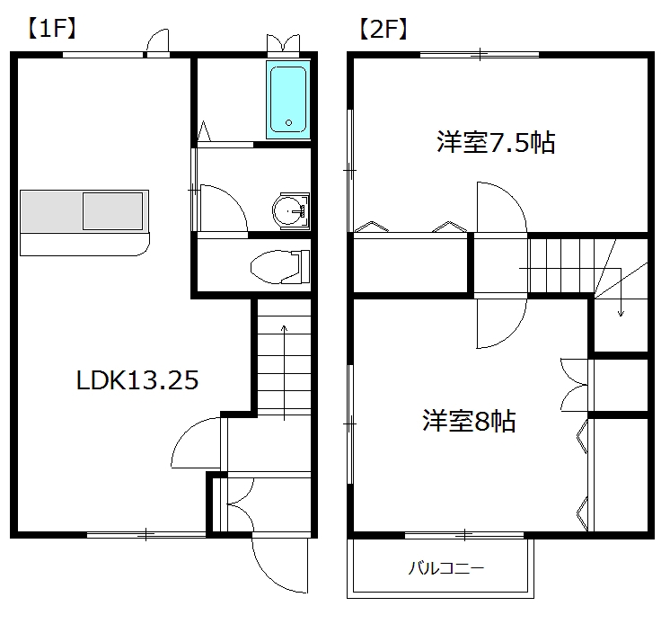 2LDK[1F:LDK13.25 2F:洋室8帖、洋室7.5帖]