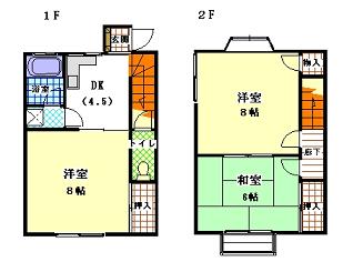 3DK[1F:和室8帖・DK 2F:和室6帖・洋室8帖]