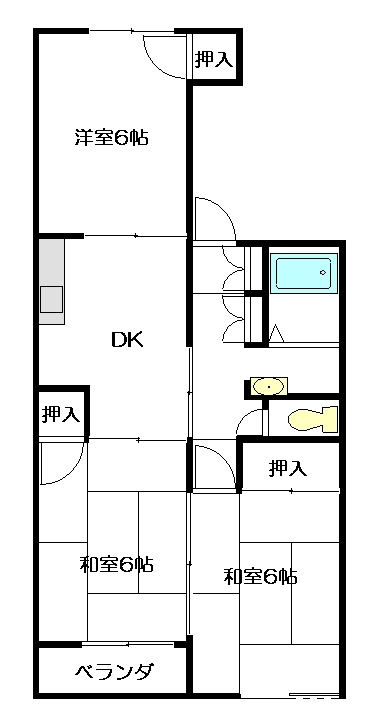 3DK[洋室6帖、和室6帖、和室6帖、DK7]