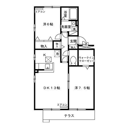 2LDK[洋室7.5帖・洋室6帖・LDK13]