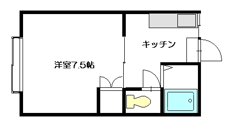 1K[洋室8帖、キッチン]