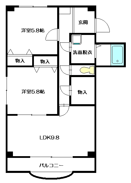 都市ガス・バス(シャワー付)・洋式トイレ・洗面化粧台・バルコニー