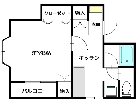 1K [洋室8帖、キッチン]