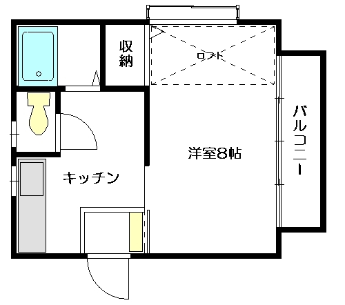1K[洋室8帖、ロフト付、キッチン]