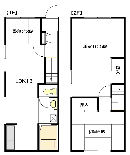 2LDK[ 1F:LDK13 2F:洋室10.5帖、和室6帖 ]