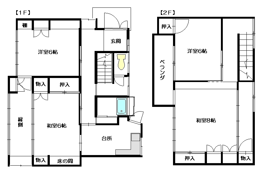4DK [1F:洋室6帖・和室6帖・DK 2F:洋室6帖・和室8帖]