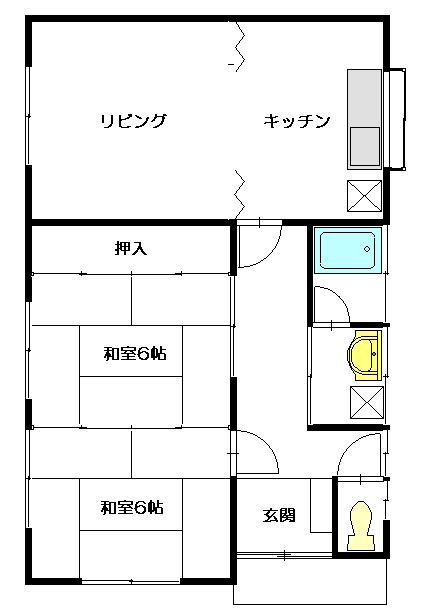 2K[和室6帖、和室3帖、キッチン]