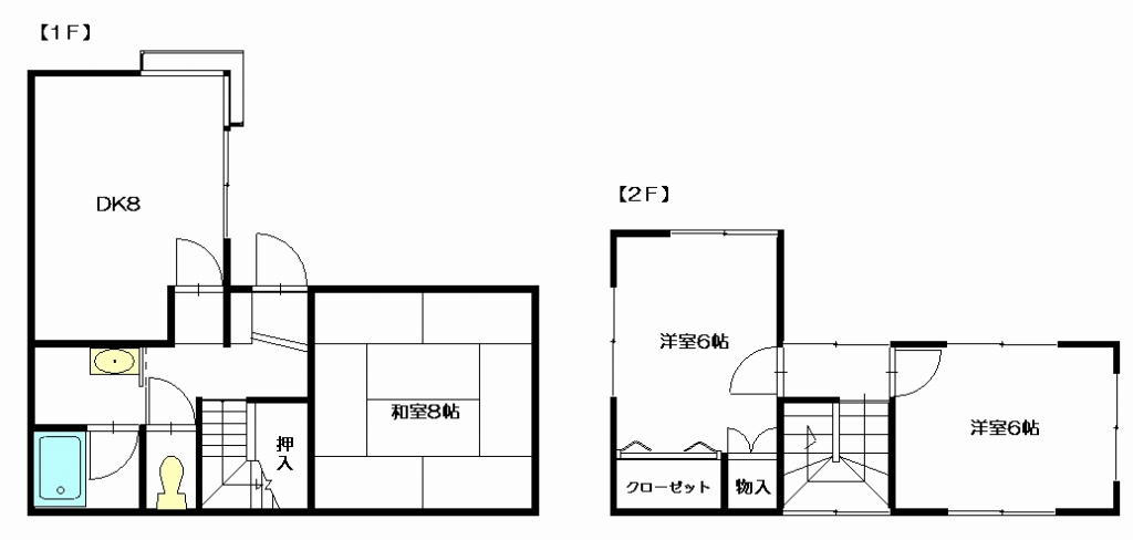 [1F: 和室6帖、DK8 2F: 洋室6帖、洋室6帖]