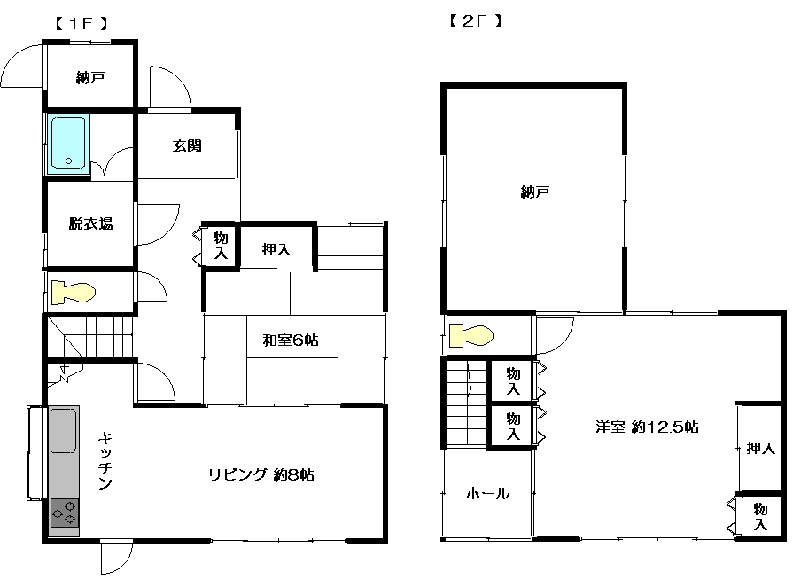 2F : 洋室約12.5帖、納戸