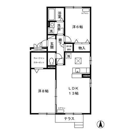 2LDK [洋室6帖・洋室8帖・LDK13]