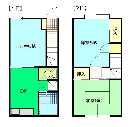 2F:洋室6帖、和室6帖
