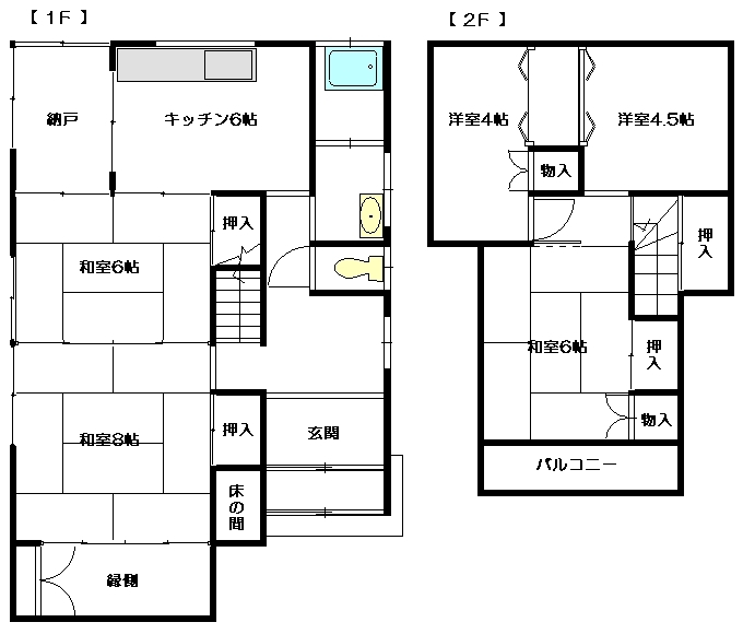 洋室4.5帖、和室6帖、キッチン