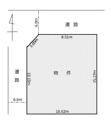 北側6m市道、西側6m市道に接道 角地